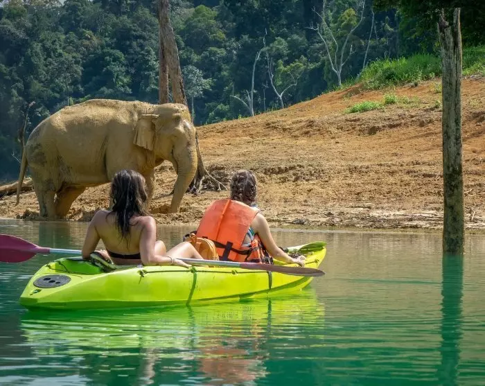 Matka jatkuu todellisella viidakkoseikkailulla Thaimaan kauneimmassa kansallispuistossa, Khao Sokissa. Ensimmäinen yö vietetään vehreässä viidakossa Sok-joen läheisyydessä, jossa linnut laulavat kilpaa ja apinat keikkuvat oksalta oksalle puiden latvoissa. Toisena yönä majoitut kelluvassa lautahotellissa maagisen, smaragdinvihreän Cheow Lan -järven keskellä, josta jyrkät kalkkikivikalliot heijastuvat tyyneen veteen. Täällä lähdet veneajelulle, jossa saatat olla onnekas ja kohdata villejä elefantteja.
