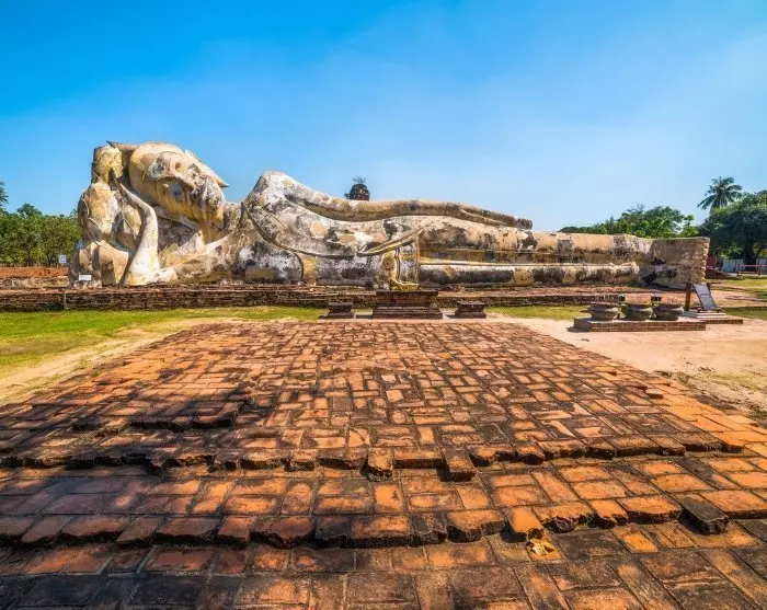Viimeinen kohde on vanha luostari Wat Lokaya Sutha. Luostarista ei ole lattioiden, seinien ja pilareiden lisäksi paljonkaan jäljellä. Sen tärkein nähtävyys onkin 37 metriä pitkä makaava Buddha, jonka kasvoilla loistaa rauhallinen hymy.