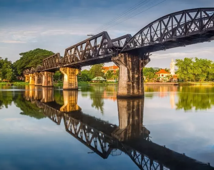 Seuraavaksi vierailet Kwai-joen ylittävällä maailmankuululla sillalla, joka on osa Kuoleman rautatietä.