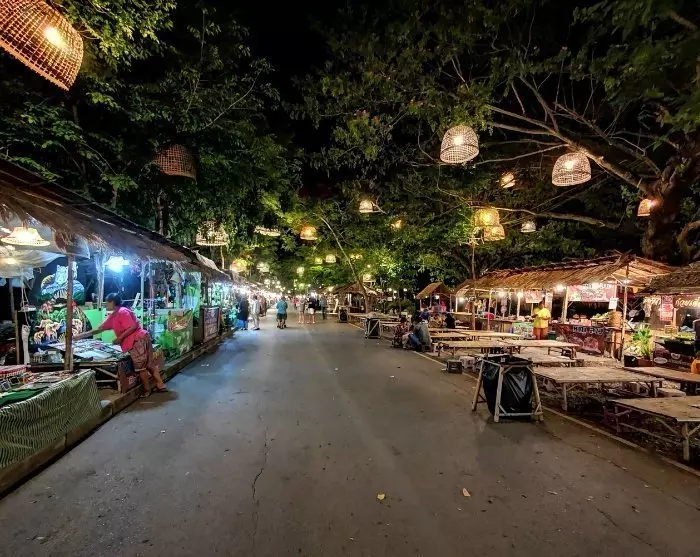 Seuraavaksi vierailet paikallisilla yömarkkinoilla, joissa on aikaa tutkia lukuisten kojujen tarjontaa. Pääset tutustumaan paikallisiin herkkuihin, kuten haudutettuun possunpotkaan (khao kha mu), kookosvanukkaaseen ja kananmunan kassa tarjoiltavaan tahmeaan riisiin (bua loi khai waan).