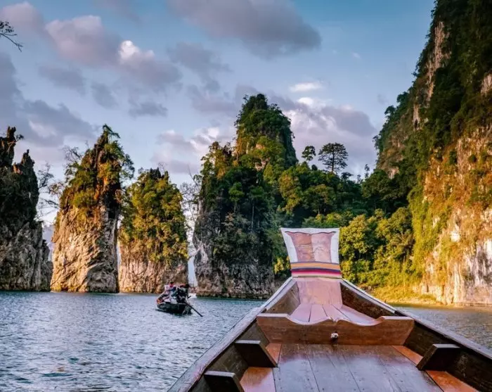 Tämän jälkeen matka jatkuu Ratchabrapa-laiturille, joka sijaitsee aivan vaikuttavan padon vieressä. Nouset pitkähäntäveneeseen, joka vie sinut Cheow Lan -järven majesteettisiin maisemiin.