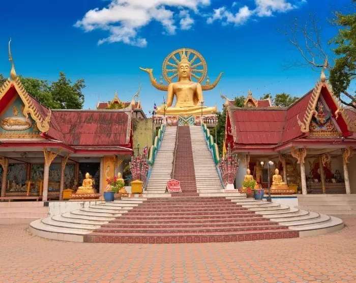Ensimmäinen vierailukohde on Big Buddha -temppeli, joka on Koh Samuin tärkein maamerkki. Valtavalle, auringossa kultaisena hohtavalle Buddhan patsaalle pääset nousemalla 72 porrasta. Patsaalta avautuu upea näköala merelle.