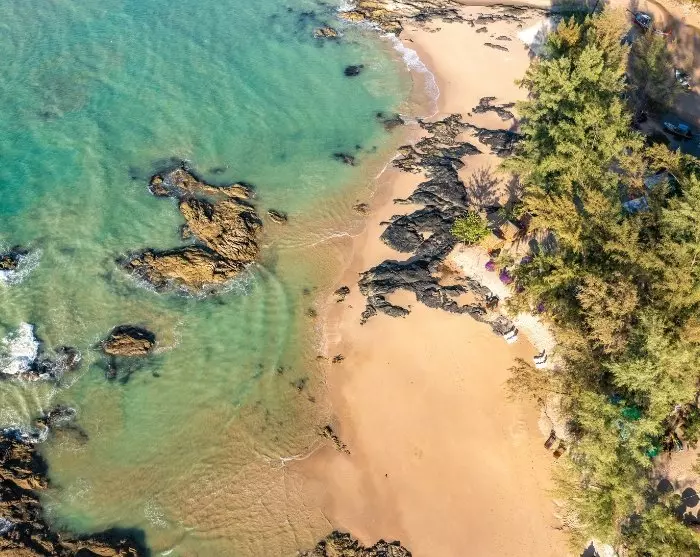 Khao Lakin lomaparatiisin muodostavat useat erilliset, mutta toisiinsa yhteydessä olevat ranta-alueet. Lomakeskusten toisella puolella aukeaa kauniin vihreä meri ja toisella puolella kasvaa rehevän vihreä sademetsä.