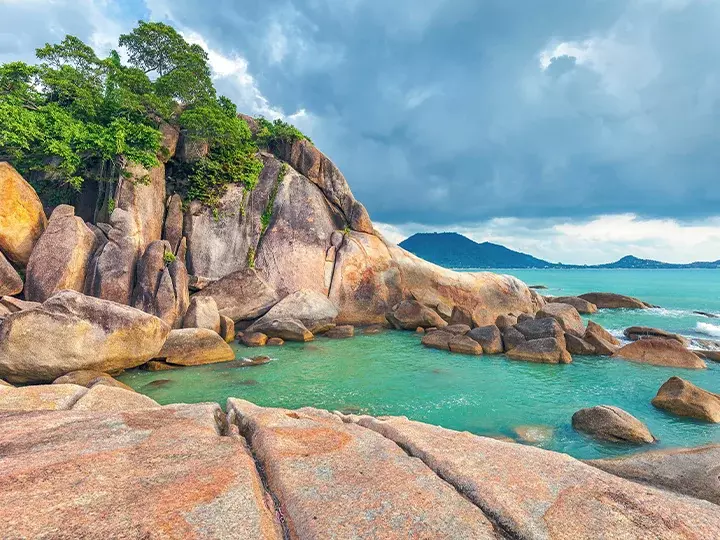 Koe saarihyppelyllä kaksi Kaakkois-Thaimaan luonnonkaunista helmeä: Koh Samui ja Koh Phangan.