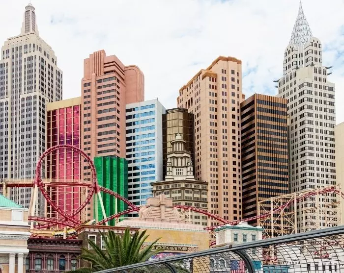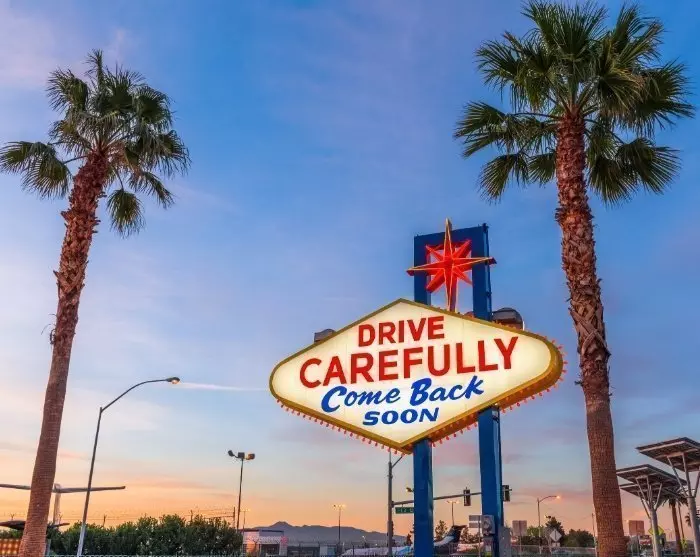 Parin tunnin ajomatkan jälkeen voit yhtäkkiä tuntea Las Vegasin etäisyyden päästä. Kun lähestyt kaupunkia, näet horisontissa erikoisia rakennuksia. Nämä ovat kuuluisia teemahotelleja, jotka sijaitsevat vierekkäin lähes 7 kilometrin pituisen Las Vegas Blvd:n – jota kutsutaan myös nimellä The Strip – varrella.