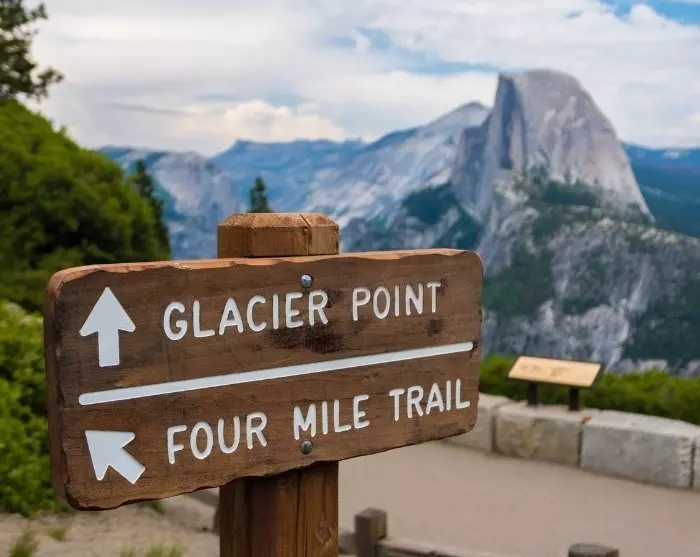 Kesäkuukausina, kun lumi on sulanut, Glacier Point on yksi niistä näköaloista, joista sinun ei pitäisi jäädä paitsi. Voit sekä ajaa autolla että varata bussin Glacier Pointiin (varataan maksua vastaan suoraan puistossa saapumisjärjestyksessä). Jos haluat patikoida näköalapaikalta, voit myös varata bussilipun näköalapaikalle ja patikoida alas Four Mile Trailin kautta. Glacier Pointista voit myös kokea poikkeuksellisen auringonlaskun – eli hetken, jolloin aurinko säteilee oranssia hehkua suurelle vuorelle, Half Domelle.