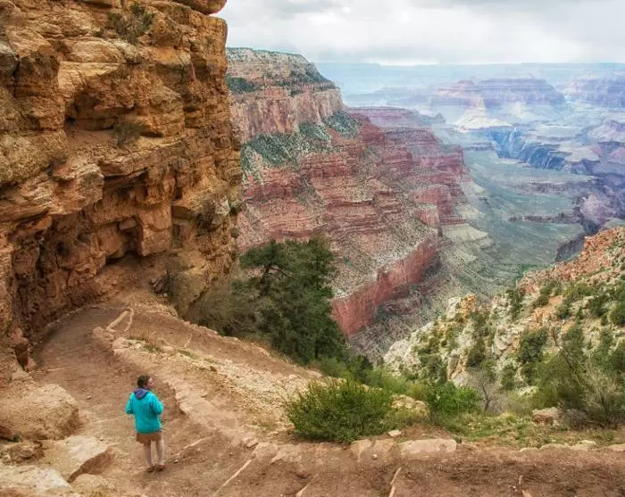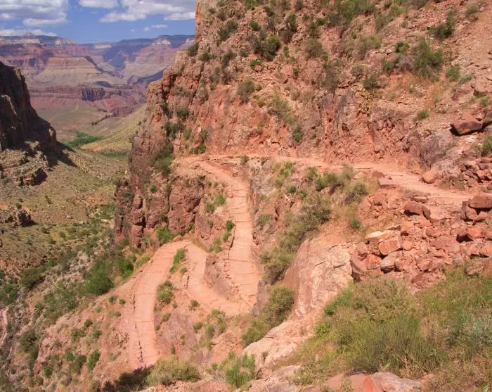 Voit myös vetää mukavat kengät jalkaan ja lähteä patikoimaan jollekin alueen monista poluista. Suosituin reitti on Bright Angel Trail, jossa voit nähdä luonnonkauniiden maisemien lisäksi muuleja, vuorikauriita ja petolintuja. Monet kävelevät kuitenkin vain ensimmäisen osan 15 kilometrin pituisesta reitistä. Ota huomioon suhteellisen suuret lämpötilan vaihtelut laskeutuessasi ”the canyoniin”, jonka pohjalla on huomattavasti lämpimämpää kuin huipulla.