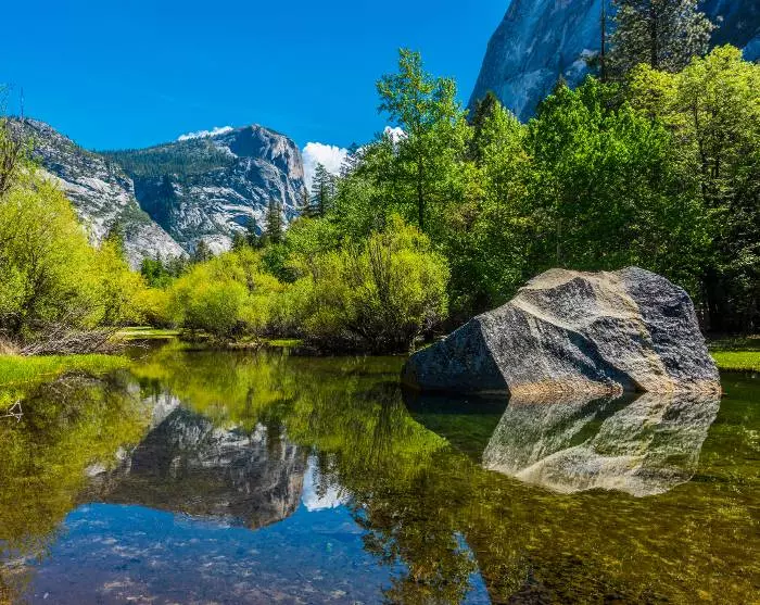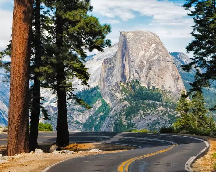 Seuraavat päivät vietät maisemissa, joita hallitsevat vuoret, peilityynet järvet ja jylhät havupuut. Lähdet tänään Mammoth Lakesista vähän erilaisiin luontomaisemiin, jotka odottavat yli 3 000 neliökilometrin kokoisessa Yosemiten kansallispuistossa. Jos matkustat kesällä, voit ajaa Tiogan solan kautta, joka on yleensä suljettu lumen vuoksi marraskuusta kesäkuuhun.