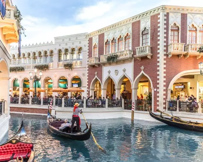 Aamiaisen jälkeen, ennen kuin aurinko alkaa kunnolla paahtaa, suosittelemme lähtemään hotellihyppelylle. Valtaisat ”hotellimaailmat” ovat Vegasille ominainen ilmiö, ja luksushotelli toisensa jälkeen räjäyttää tajuntasi arkkitehtuurilla, jossa ei ole säästelty missään suhteessa. The Venetianissa gondolit lipuvat pitkin kanaaleja, ja Paris-hotellissa voit nähdä vaikuttavan, 160 metriä korkean kopion Eiffel-tornista. Suosittelemme käyttämään raitiovaunun modernia versiota (Las Vegas Monorail), joka kulkee Stripin toisen puolen takana ja pysähtyy monissa suurissa teemahotelleissa.