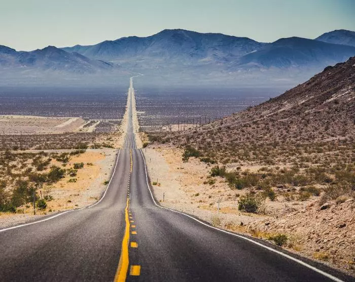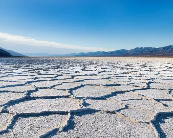Voit valita hieman pidemmän reitin ja ajaa Death Valleyn läpi, joka on yksi Yhdysvaltain suurimmista kansallispuistoista ja tunnetaan yli 50 °C:n äärilämpötiloistaan. Täällä huomaat, että aavikolla on paljon muutakin kuin loputtomia hiekkaharjanteita. Esimerkiksi Badwater Basin on valtava suolatasanko ja Yhdysvaltojen matalin kohta, joka sijaitsee 86 metriä merenpinnan alapuolella.