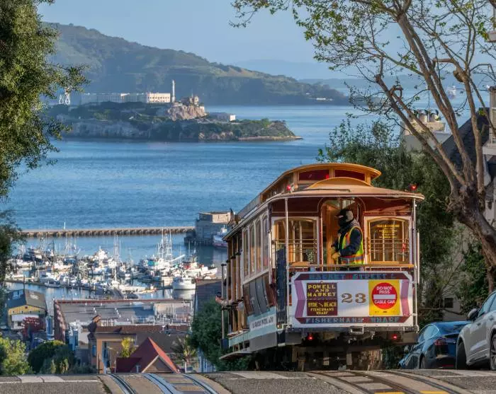 Voit liikkua kävellen, taksilla tai kokeilla kenties kaupungin historiallista cable car -ratikkalinjaa, joka on kuljettanut ihmisiä San Franciscon kukkuloiden yli jo vuodesta 1878. Kertalippuja ja kokopäivälippuja, voit ostaa pääteasemilta. Kuuluisa Hyde-Powell-linja kuljettaa sinut kätevästi Union Squarelta suositulle Fisherman’s Wharfin alueelle. Jos haluat elää hetken kuin paikallinen, nappaa seisomapaikka vaunun kyljestä ja tunne vatsanpohjassa mukava jännitys, kun vauhti kiihtyy alamäessä kaupungin rinteillä.