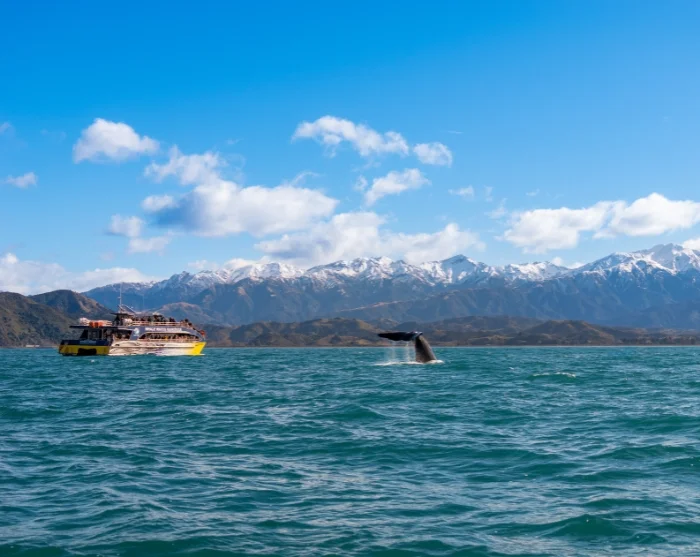 Kun olet pysäköinyt autosi ja tehnyt lähtöselvityksen Whale Watch Kaikouran toimistolla (vähintään 30 minuuttia ennen lähtöä), sinut kuljetetaan bussilla South Bay Marinaan (noin 10 minuuttia). Nouset moderniin katamaraaniin, joka on rakennettu erityisesti valassafareita varten. Kapteeni ja miehistö ovat valmiina tarjoamaan sinulle parhaat mahdollisuudet nähdä valaita, muita merieläimiä ja merilintuja.