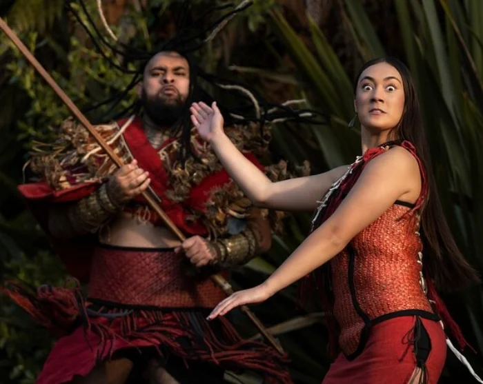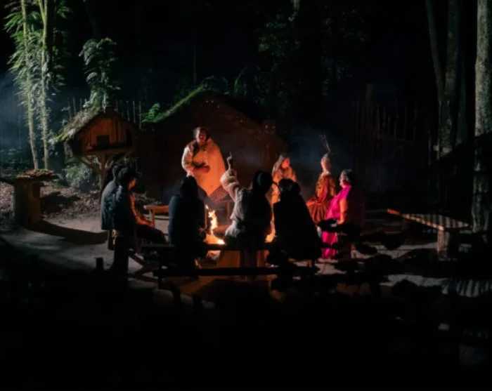 Näet mukaansatempaavan kapa haka -esityksen luonnollisessa amfiteatterissa, jota ympäröivät korkeat tawa-puut ja liekehtivät kokot. Haka, poi ja waiata (laulu) välittävät maorien tarinoita ja perinteitä, mikä luo syvän yhteyden Aotearoan (Uuden-Seelannin) kulttuurisiin juuriin.