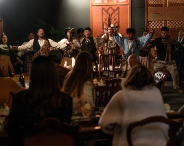Esityksen jälkeen kävelet oppaan johdolla metsän läpi illallispaikalle, missä sinua odottaa runsas kolmen ruokalajin maori-fuusioillallinen. Ruokalista vaihtelee vuodenaikojen mukaan ja sisältää perinteisessä maauunissa (hāngī) valmistettuja ruokia sekä moderneja ruokalajeja, joissa käytetään perinteisiä ainesosia, kuten kawakawaa, pikopikoa ja savustettuja erikoisuuksia. Illallinen syödään saman pöydän ääressä, mikä innostaa yhteisöllisyyteen ja keskusteluun.