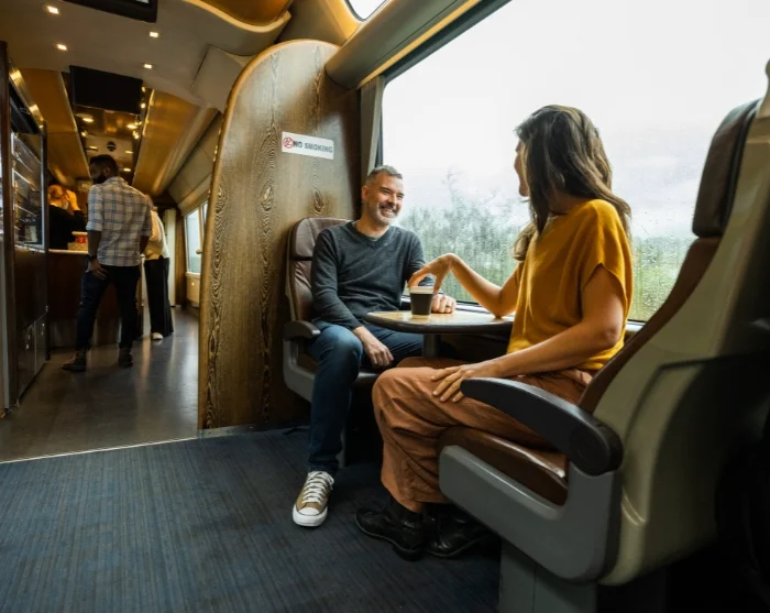 Voit korottaa junalipun tasoa Scenic Plus -lippuun, joka sisältää aterian ja juomat sekä muita lisämukavuuksia.