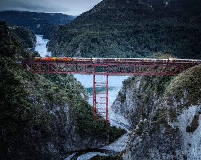 Muista ottaa kamera valmiiksi ennen kuin juna ylittää henkeäsalpaavan Staircase Viaductin, jossa raiteet kulkevat peräti 73 metriä Staircase Creekin, Waimakariri-joen sivujoen, yläpuolella. Otira-tunnelin tavoin tämä viadukti on todellinen insinööritaidon mestariteos.