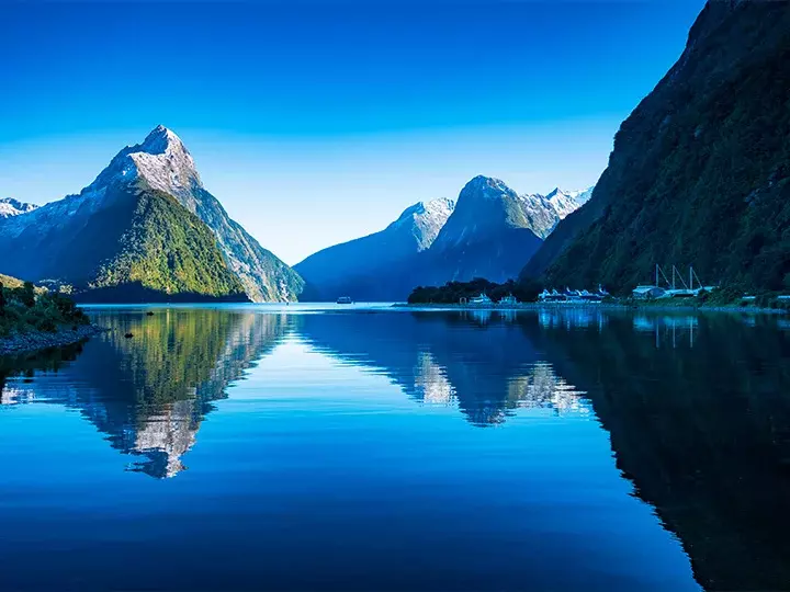 Milford Sound Fiordlandin kansallispuistossa on yksi Uuden-Seelannin tunnetuimmista nähtävyyksistä ja mahdollisesti kaunein luontoelämys, jonka voit kokea matkalla. On vaikea olla vaikuttumatta, kun näkee upean vuonon pystysuorat kalliot, pauhaavat vesiputoukset ja tiheät sademetsät.