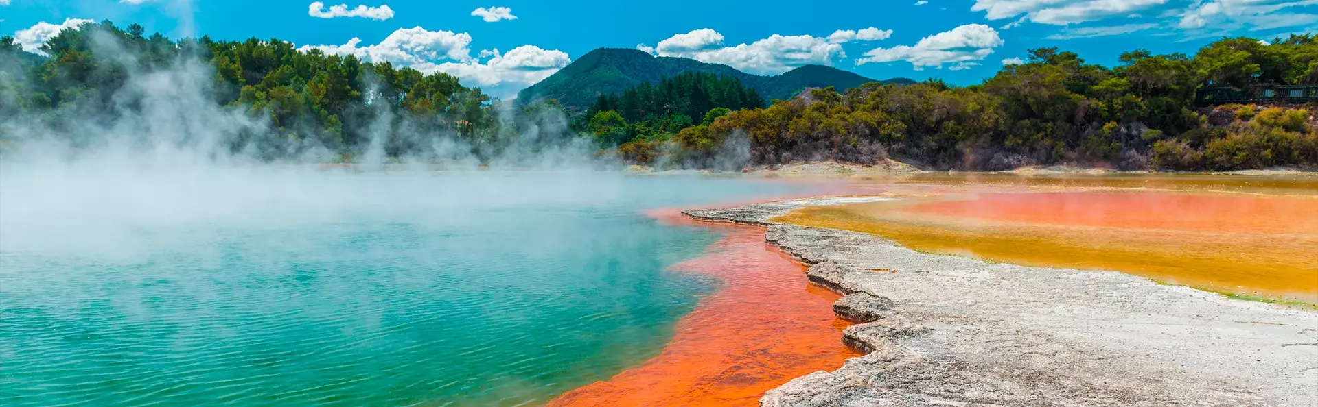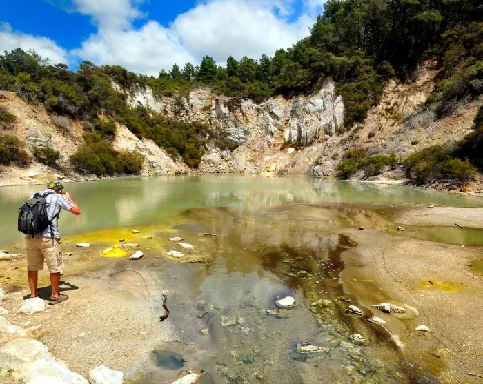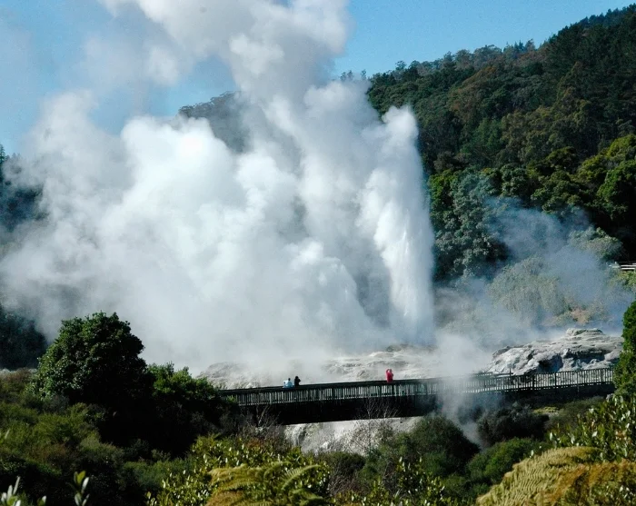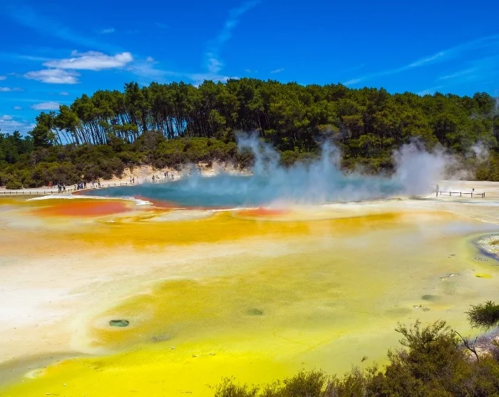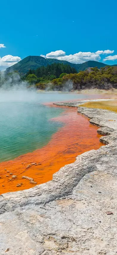 Matkan varrella on mahdollisuus omakustanteisiin lounas- ja kahvitaukoihin ennen siirtymistä Wai-O-Tapuun. Täällä luonnonvoimat ovat luoneet värikkään ja kiehtovan geotermisen maiseman, johon kuuluu muun muassa Champagne Pool, kraatterijärviä ja maasta nousevaa rikkihöyryä. Tuntuu melkein siltä kuin olisi toisella planeetalla, ja rikkivedyn tunnusomainen haju kuuluu elämykseen. Päivän päätteeksi saavut Rotoruaan (Te Rotorua-nui-a-Kahumatamomoe), jossa ilta on vapaa ja voit tutkia kaupunkia omatoimisesti.