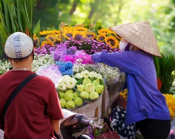 Matka jatkuu vilkkaalle Hoang Hoa Tham -kadulle, jonka monet pienet kukkakaupat ja kaupustelijat ovat erikoistuneet kukkien ja taimien myyntiin. Täällä voit nauttia sesongin kauneimpien kukkien lumoavista tuoksuista ja pikkuruisten bonsaipuiden kauneudesta.