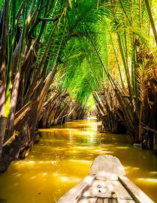 Osaksi veneellä tehtävällä kokopäiväretkellä voit tutustua myös Mekongin suistoalueeseen. Rehevä ja hedelmällinen Mekong-joen suisto on laajuudeltaan noin 40000 m2, josta suurin osa on veden peitossa. Mekong virtaa alkulähteiltään 4500 kilometrin matkan kuuden maan läpi, kunnes se saapuu suistoonsa Ho Chi Minhin kaupungin eteläpuoliselle rannikolle. Veneretkellä vieraillaan myös paikallisten käsityöläisten luona ja pienviljelijöiden tiluksilla, esimerkiksi kookospähkinäplantaasilla.