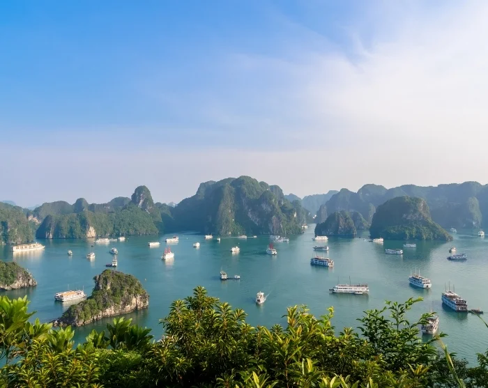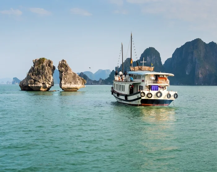 Seuraavaksi suuntaat kohti itää ja legendaarista Halonginlahtea, missä odottaa miniristeily. Seilaat satojen vihreiden karstisaarten lomassa, vierailet helmenviljelytilalla, tutkit yhtä lahden suurimmista luolista ja voit meloa kajakilla – tiedossa on maailmanluokan luontoelämys.
