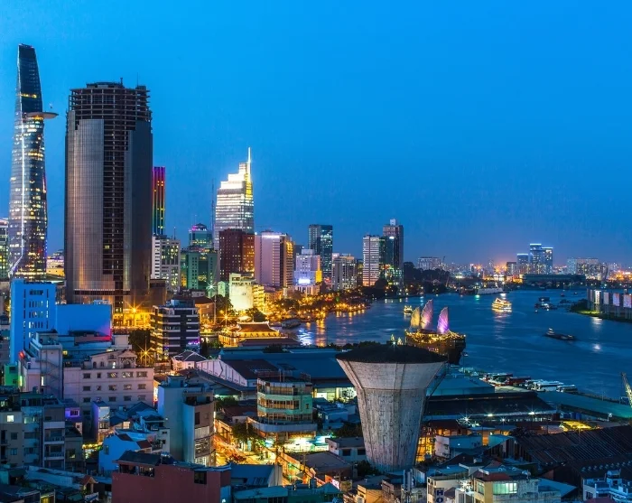 Auringon laskettua voit huipentaa päivän seikkailun esimerkiksi Bitexco Financial Towerissa tai Landmark 81:ssä, joista avautuvat upeat panoraamanäkymät Ho Chi Minhin kaupungin tuikkivien valojen yli.