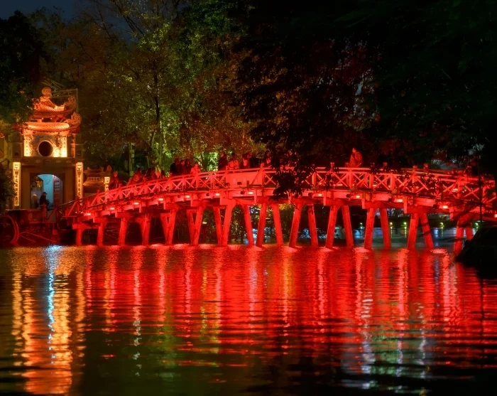 Täältä kävellään ikonisen Huc-sillan yli Ngoc Son -temppeliin, joka sijaitsee keskellä kaunista Hoan Kiem -järveä. Sillan nimi tarkoittaa ”paikkaa, johon aamuauringon ensi säteet osuvat”. Täällä saat kuulla kertomuksen keisarista, taikamiekasta ja jättiläiskilpikonnasta ja kuulet, miten järvi sai nimensä ja miten tärkeä se on kaupungille.