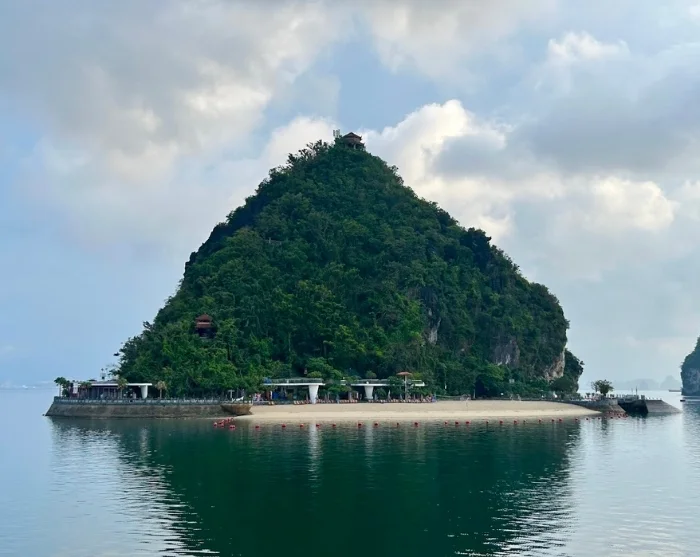 Aamiaisen jälkeen on vuorossa retki Ti Top Islandille, pienelle karstisaarelle, josta löytyy yksi Halonginlahden parhaista hiekkarannoista. Täällä voit mennä uimaan smaragdinvihreään veteen tai kiivetä saaren huipulle, mistä avautuu ensiluokkainen näköala lahdelle.