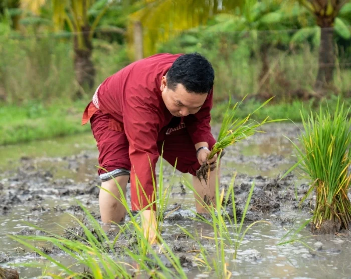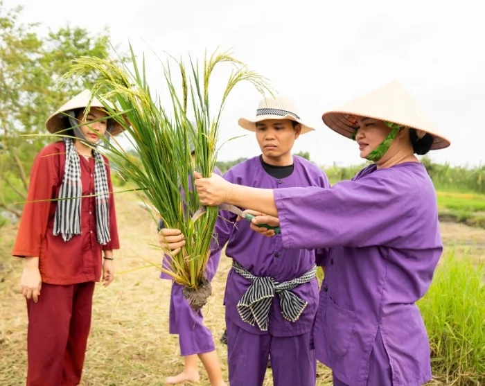 Sen jälkeen jatkat matkaa Vinh Longiin, jossa kumppanimme on käynnistänyt sosiaalisesti kestävän kehityksen hankkeen. Täällä lähdet rauhalliselle kävelylle maalaiskylän läpi, jonka aikana opas kertoo sinulle tarkemmin projektista ja sen merkityksestä. Pääset myös itse kokeilemaan perinteistä maataloustyötä: voit osallistua riisiviljelyyn joko istuttamalla nuoria versoja tai auttamalla sadonkorjuussa, vuodenajasta riippuen. Tämä opettavainen ja aito kokemus tarjoaa ainutlaatuisen näköalan vietnamilaisen maaseudun arkeen ja siihen työhön, joka liittyy kestävään viljelyyn. Osallistumalla retkelle tuet samalla paikallisia perheitä Vinh Longissa, sillä osa matkan hinnasta menee suoraan projektin hyväksi. Voit lukea lisää täältä.