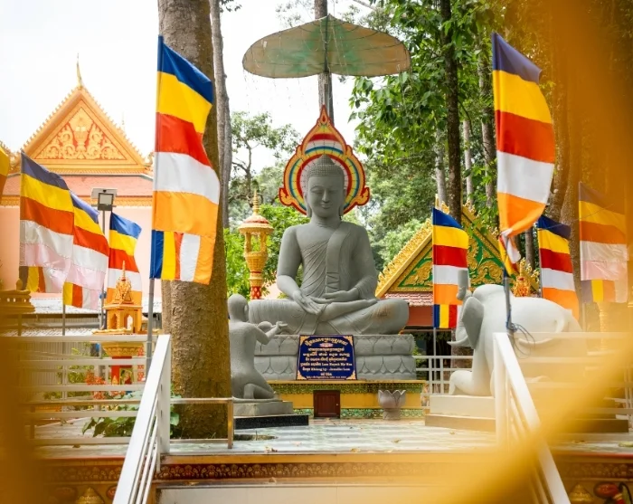 Tänään pääset kurkistamaan arkeen ja käsityöperinteisiin Tra Vinhin pienissä kyläyhteisöissä. Tra Vinh on rauhallinen provinssi Mekongin suiston eteläosassa, jonka tunnuspiirteenä on suuri khmer-väestö. Värikkäät pagodit, verkkaisa elämänrytmi ja hengellinen ilmapiiri antavat kaupungille ainutlaatuisen luonteen ja luovat tunnelman päivän elämyksille.