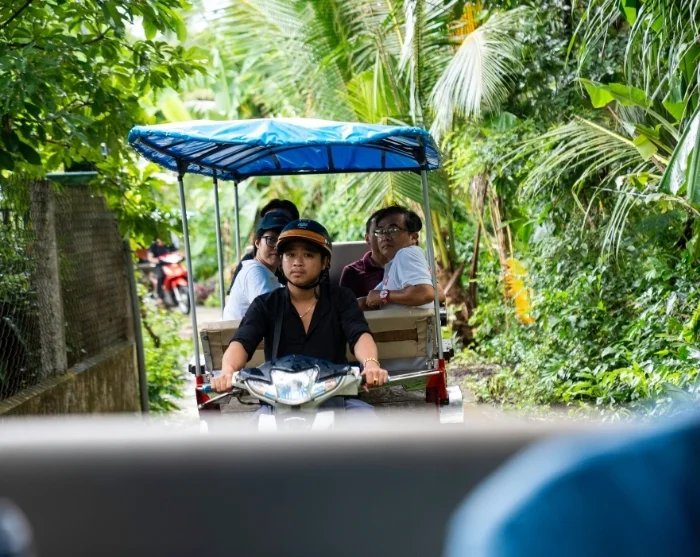 Veneretki vie sinut rauhaisalle saarelle keskellä Mekong-jokea. Siellä pääset nauttimaan vietnamilaisen lounaan, joka on valmistettu tuoreista paikallisista raaka-aineista. Lounasta syödessäsi voit ihailla ympärilläsi levittäytyvää vehreää luontoa ja rauhallista jokimaisemaa.