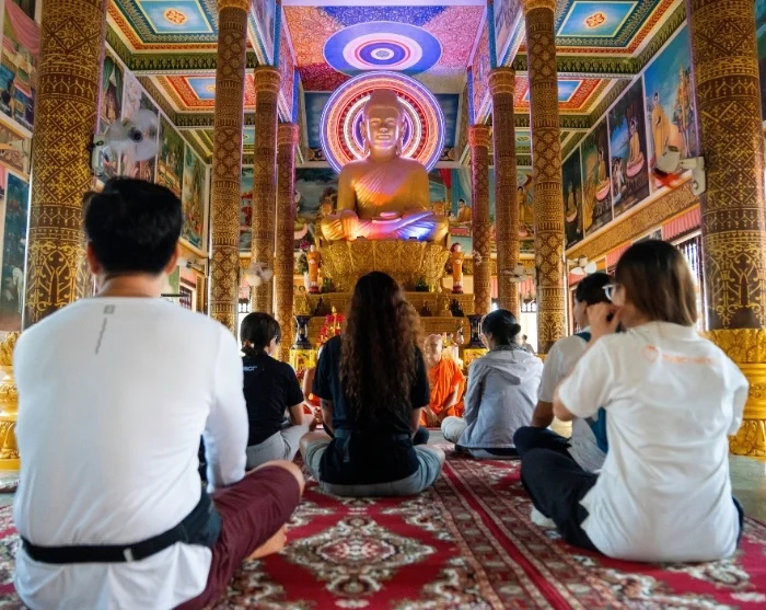 Tämän jälkeen pääset nauttimaan paikallisessa kokoontumistalossa esityksestä, jossa soi perinteinen khmer-musiikki ja nähdään tanssia – tunnelmallinen johdatus alueen rikkaaseen kulttuuriperintöön.