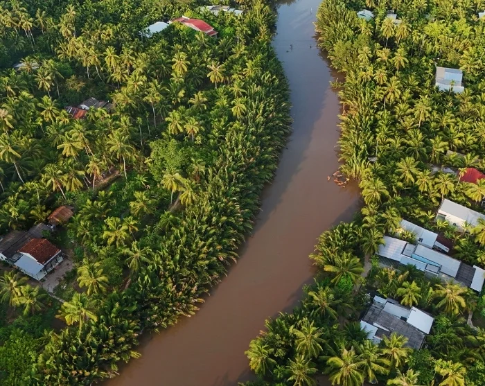 Et joudu matkustamaan pitkälle Ho Chi Minhin kaupungista, kun maisema alkaa jo muuttua. Tien varrella näet vihreitä peltoja sekä ohitat pieniä jokia ja kanavia, jotka kiemurtelevat halki tasaisen maiseman. Voit nähdä paikallisia viljelijöitä töissä pelloilla ja vesipuhveleita laiduntamassa tien reunalla. Tien varrella pienet kojut houkuttelevat tuoreilla hedelmillä.