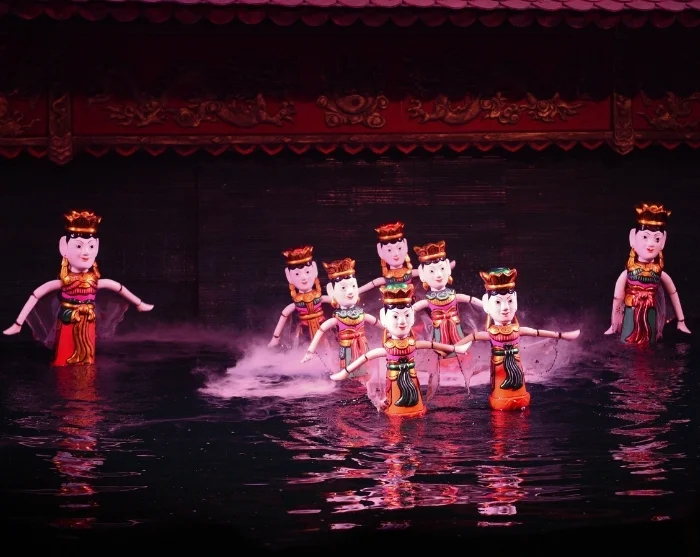 Päivän kaupunkikierros huipentuu perinteiseen vesinukketeatteriesitykseen. Kyseessä on satoja vuosia vanha vietnamilainen perinne, jossa nuket tanssivat veden pinnalla elävän musiikin ja klassisen tarinankerronnan säestyksellä.