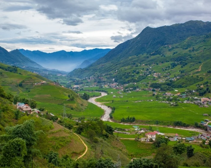 Sen jälkeen ajetaan pieneen kylään, joka sijaitsee kauniilla paikalla Muong Hoa -laaksossa. Ajomatka kestää noin tunnin. Täältä alkaa 1½–2 tuntia kestävä luonnonkaunis patikkaretki pitkin polkuja, jotka yhdistävät alueen pienet kyläyhteisöt toisiinsa. Reitti mutkittelee vihreiden vuorten rinteillä ja rehevien laaksojen läpi, ja selkeällä säällä voit nauttia näkymistä jylhälle Fansipan-vuorelle. Muista varautua patikkaretkeen mukavilla ja luistamattomilla kengillä, sillä polut saattavat muuttua märällä ilmalla liukkaiksi.