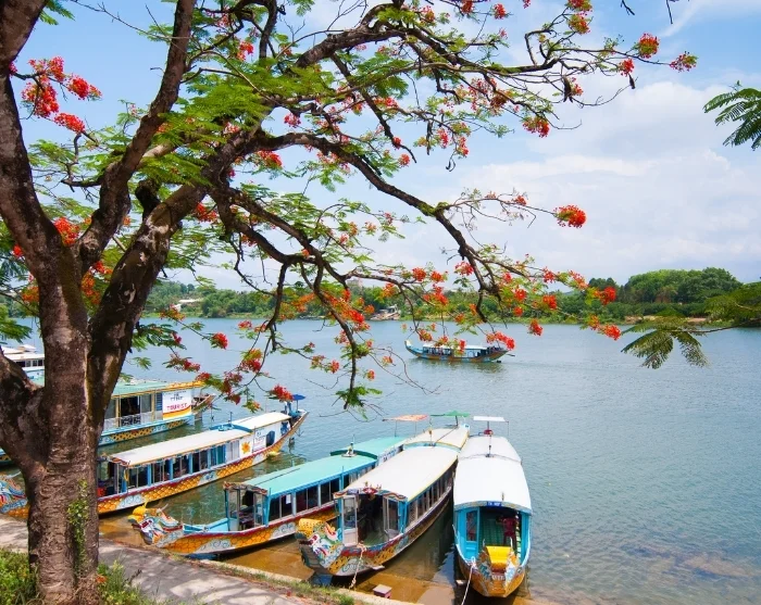 Nouset laivasta maihin Ha Long International Port -satamassa, missä opas ja kuljettaja ovat vastassa kuljettaakseen sinut Hanoin Noi Bai -lentokentälle. Täältä lennät Keski-Vietnamissa sijaitsevaan Huéen – lento kestää noin 1 tunnin ja 15 minuuttia. Opas odottaa sinua tuloaulan ulkopuolella heti ulko-ovien jälkeen. Tunnistat oppaan helposti, sillä hänellä on yllään TourCompass-univormu ja kädessään TourCompass-kyltti. Hän kuljettaa sinut hotelliisi, joka sijaitsee kaupungin keskustassa.